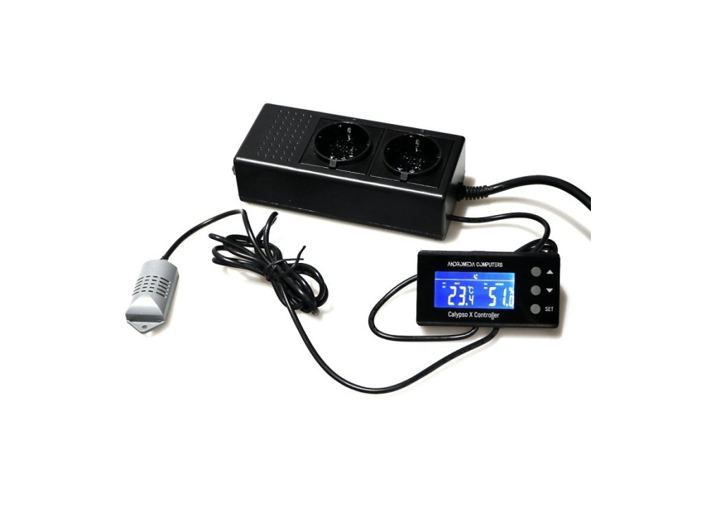 Digitálny termostat a hydrostat v jednom!Toto profesionálne zariadenie od spoločnosti Andromeda Computers je vybavené 1,5 m dlhým externým senzorom a dvoma zásuvkami.