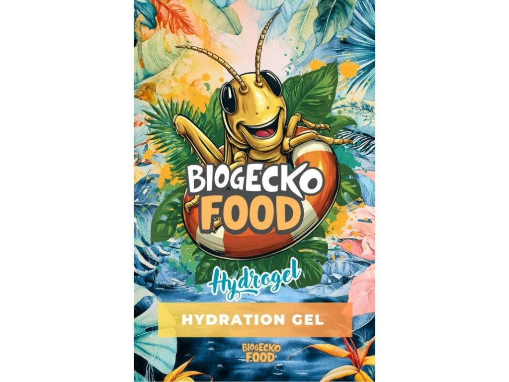 BioGecko Food – Hydrogel je profesionálny produkt určený pre bezpečnú a účinnú hydratáciu kŕmneho hmyzu, ako sú cvrčky, šváby, kobylky a larvy hmyzu, ale aj tarantula, škorpióny a ďalší pavúkovci chovaní v zajatí. Produkt obsahuje čistý polyakrylát sodný – látku schopnú viazať veľké množstvo vody a premieňať ju na stabilný, elastický gél.