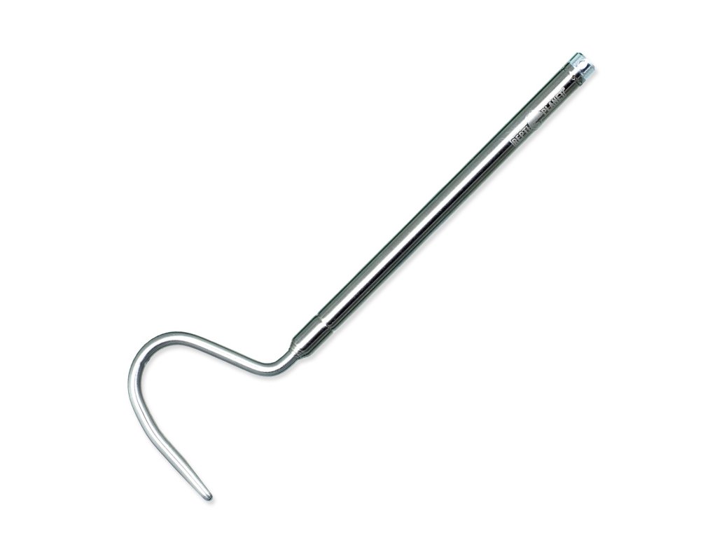 Teleskopický hák z nehrdzavejúcej ocele pre bezpečnú manipuláciu s hadmi. Hák je vhodný na manipuláciu s mladými a stredne veľkými hadmi do 1 kg. Výhodou je nastaviteľná dĺžka háčika a jednoduché skladovanie. Hák je možné predĺžiť až na 60 cm. V zloženom stave je dlhý 21 cm a ľahko sa zmestí do vrecka, takže je ideálny na nosenie v teréne.