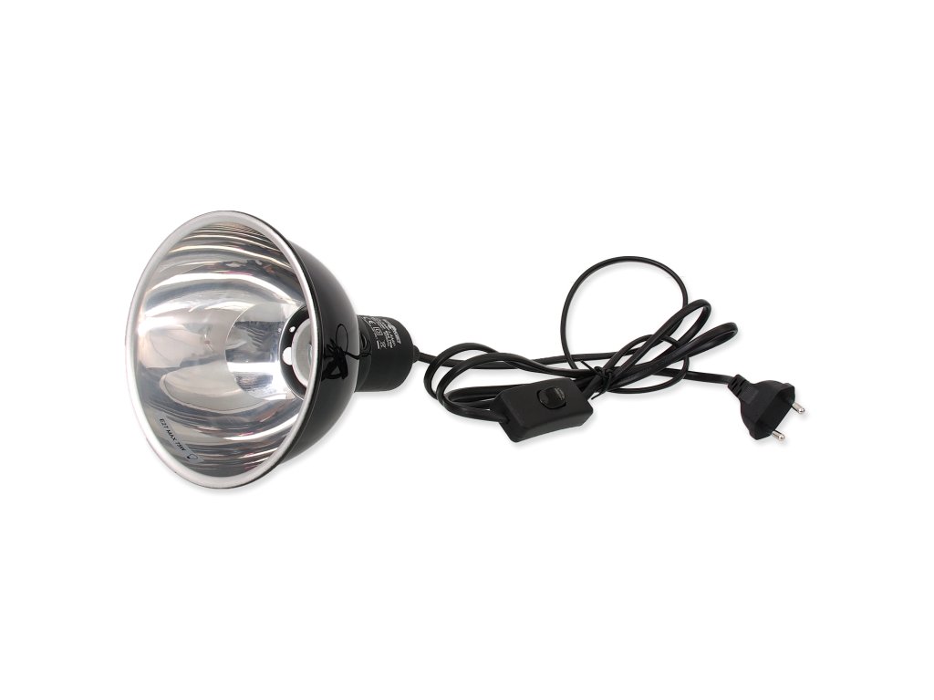 Hliníkový reflektor od spoločnosti REPTI PLANET vybavený odolnou keramickou objímkou v čiernej farbe. Súčasťou reflektora je napájací kábel a háčik na zavesenie. Vetracie otvory v hornej časti reflektora zabezpečujú dostatočné vetranie.