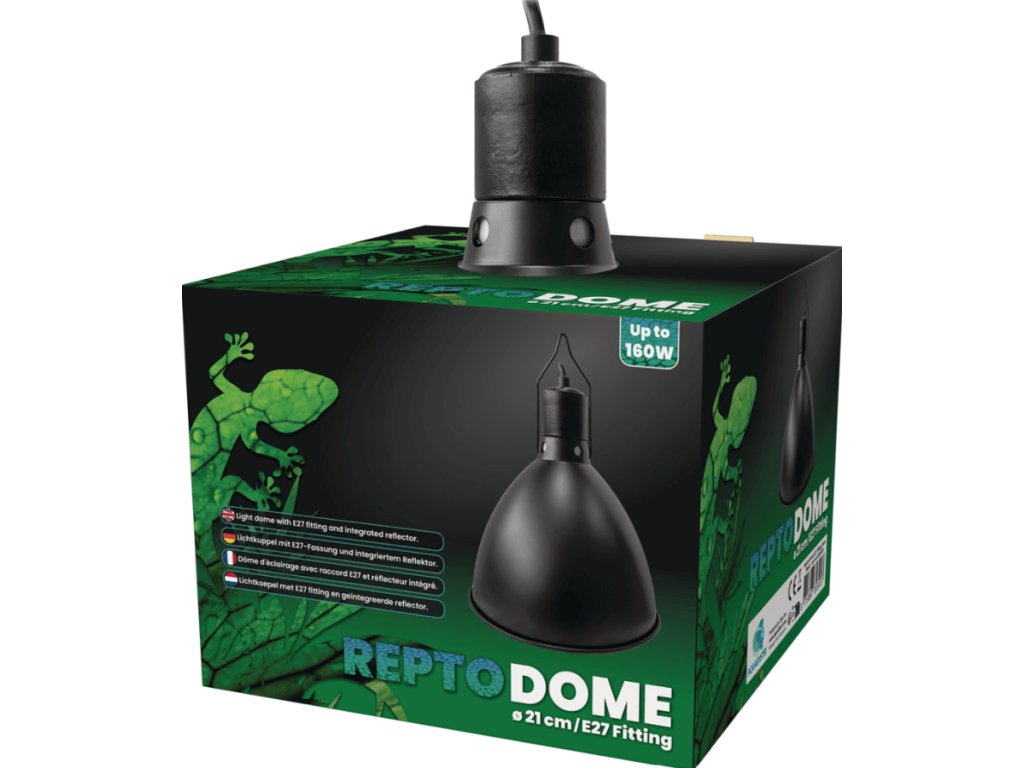 Repto Dome je ideálny na použitie so žiarovkami i kompaktnými žiarivkami.Vetracie otvory vo vrchnej časti reflektora zaisťujú dostatočné odvetrávanie. Reflektor je vybavený odolnou keramickou objímkou s päticou E27.