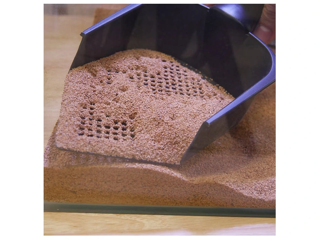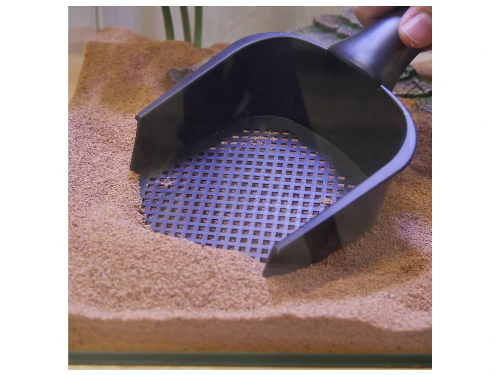 Lopatka je navržena pro efektivní oddělení odpadu od čistého substrátu, což šetří nejen čas při údržbě, ale i samotný materiál. Je vhodná pro použití s různými typy podestýlek – od písku až po jemné směsi pro plazy a bezobratlé.